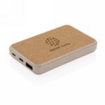 Power bank 5000 mAh, 4 diody wskazujące poziom naładowania, górna część wykonana z naturalnego korka, obudowa z mieszanki 35% słomy pszenicznej i ABS, wbudowany akumulator litowo-polimerowy klasy A o dużej gęstości i trwałości pozwala na naładowanie telefonu do 3 razy, wejście USB typu C 5V/2A, wejście micro USB 5V/2A, wyjście 5V/2A, nie zawiera PVC