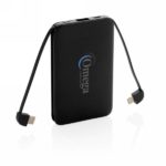 Power bank 5000 mAh, zintegrowany kabel 3 w 1 z TPE, kompatybilny z większością urządzeń dostępnych na rynku, kieszonkowy rozmiar, wykonany z ABS, wskaźniki poziomu naładowania, wbudowany akumulator litowo-polimerowy klasy A o dużej gęstości i trwałości pozwala naładować telefon do 2 razy, wejście 5V/2A, wyjście 5V/2A
