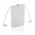 Power bank 5000 mAh, zintegrowany kabel 3 w 1 z TPE, kompatybilny z większością urządzeń dostępnych na rynku, kieszonkowy rozmiar, wykonany z ABS, wskaźniki poziomu naładowania, wbudowany akumulator litowo-polimerowy klasy A o dużej gęstości i trwałości pozwala naładować telefon do 2 razy, wejście 5V/2A, wyjście 5V/2A