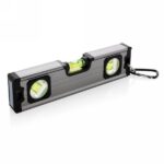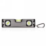 Poziomica, długość 20 cm, 3 płaszczyzny pomiaru, obudowa wykonana z aluminium, wbudowany magnes, z karabińczykiem