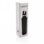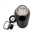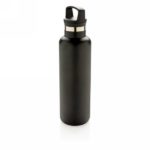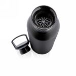 Próżniowa butelka sportowa 600 ml, proszkowa powłoka, podwójne ścianki, nakrętka 2 w 1 z sitkiem do zaparzania herbaty lub dodawania do wody owoców i ziół, ustnik do sączenia napojów i dodawania kostek lodu, wewnątrz stal nierdzewna 304, stal nierdzewna 201 na zewnątrz, utrzymuje temperaturę ciepłych napojów do 5 godzin oraz zimnych do 15 godzin