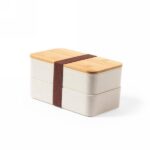 Pudełka śniadaniowe 2 szt., 2×700 ml, w komplecie: widelec, nóż, łyżka, bambusowe wieczko, połączone paskiem