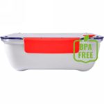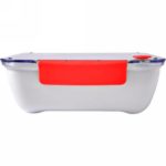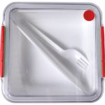 Pudełko śniadaniowe 920 ml, przezroczyste wieczko z silikonowym zamknięciem, trójkątna przegroda oraz widelec w komplecie