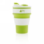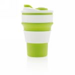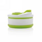 Składany kubek podróżny 320 ml, wykonany w 100% ze spożywczego materiału silikonowego, nieprzywierająca powłoka, szczelny, elastyczny, przed pierwszym użyciem należy zanurzyć kubek na kilka minut w gotującej wodzie, można myć w zmywarce, nie zawiera BPA