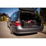 Składany organizer samochodowy, 2 przegrody z dodatkowym usztywnieniem dna, wewnątrz 2 boczne kieszenie siateczkowe