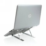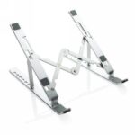 Składany stojak na laptopa, maksymalny rozmiar do 15,6″, wykonany z wytrzymałego aluminium, 6 różnych kątów ustawienia, rozłożenie zajmuje kilka sekund, antypoślizgowe paski na spodzie