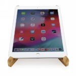 Składany stojak na laptopa, tablet, wykonany z wytrzymałego, naturalnego bambusa, podstawka zapewnia odpowiedni poziom cyrkulacji powietrza pod urządzeniem oraz właściwe położenie ekranu, kompatybilny z laptopami do 15,6″, może również służyć jako stojak na książkę, bawełniane etui w komplecie