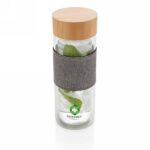 Szklana butelka sportowa 360 ml w pokrowcu, pokrowiec z rPET, podwójne ścianki ze szkła borokrzemowego odpornego na wysoką temperaturę, nie zawiera BPA, wzór zastrzeżony®