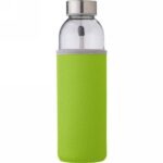 Szklana butelka sportowa 500 ml w pokrowcu, metalowa nakrętka z uchwytem, odpowiednia wyłącznie do zimnych napojów