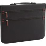 Teczka konferencyjna ok. A4 na zamek, kalkulator i notatnik (20 kartek w linie, jednostronnie), miejsce na przybory do pisania, 2 zewnętrzne kieszenie na zamek, w środku 1 kieszeń na zamek i 4 miejsca na karty kredytowe