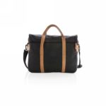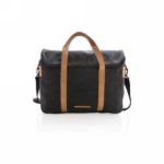 Torba na laptopa 15,6″’, wykonana z naturalnego i wytrzymałego płótna oraz imitacji skóry, wewnątrz miejsce na dokumenty, tablet i inne akcesoria, regulowany i odpinany pasek na ramię w komplecie, nie zawiera PVC