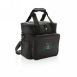 Torba termoizolacyjna Deluxe, wykonana z poliestru 1680D i 600D, pojemna przegroda główna na zamek błyskawiczny, zmieści do 20 puszek 0,33 l, kieszeń z przodu, podwójnie wzmocnione uchwyty, regulowany pasek na ramię z możliwością odpięcia