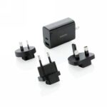 Uniwersalna ładowarka Philips 30W, adapter podróżny, wtyczki z USA, Australii, UK i UE, wejście 100-240V, wyjście USB 5V/2.4A, wyjście typu C 5V/3A, 9V/2A, 12V/1.5A, pokrowiec w komplecie, w ozdobnym pudełku Philips