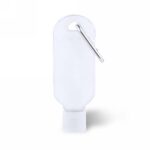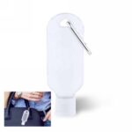 Żel do rąk w półprzezroczystej buteleczce (do wielokrotnego napełniania) z dozownikiem z zamknięciem i karabińczykiem, roztwór o 65% zawartości alkoholu, 30 ml