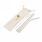 Zestaw 3 słomek wielokrotnego użytku, w komplecie: 2 słomki proste, 1 wygięta i czyścik, wykonane ze stali nierdzewnej 304, w bawełnianym etui, można myć w zmywarce, nie zawiera BPA