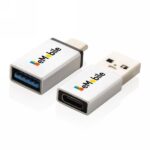 Zestaw 2 adapterów, w komplecie: adapter USB typu A do USB typu C oraz adapter USB typu C do USB typu A, wykonane z aluminium