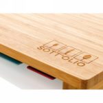 Zestaw 4 higienicznych desek do krojenia, wykonane z PP, kolor i ikona wskazują na odpowiedni dla deski typ pożywienia, w komplecie deska z ciemnego bambusa (35 x 25 cm), która może służyć jako pojemnik na pozostałe deski