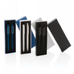 Zestaw 2 długopisów X6, w komplecie: długopis X6 z zatyczką, wkład w kolorze niebieskim w komplecie, tusz o niskiej lepkości pozwala na płynne pisanie, długość pisania ok. 800 m oraz długopis X6 z metalowym klipem, metalicznym wykończeniem na trzonie, niemiecki wkład Dokumental® w kolorze niebieskim w komplecie, długość pisania ok. 1200 m, kulka TC zapewnia wygodne pisanie