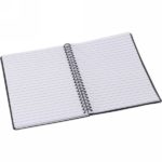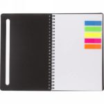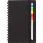 Zestaw do notatek, notatnik (ok. A5, 60 kartek w linie), 125 karteczek samoprzylepnych (25 szt. z każdego koloru), elastyczna opaska do zamykania, spiralne bindowanie
