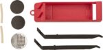 Zestaw naprawczy do opon rowerowych, w plastikowym etui, zawiera: łyżki do opon, tarkę, łaty i gumkę na wentyle