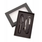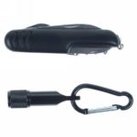 Zestaw w czarnym pudełku: narzędzie wielofunkcyjne, scyzoryk (7 el.) i latarka 1 LED z karabińczykiem