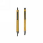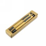 Zestaw piśmienny w etui, długopis z touch penem i ołówek mechaniczny z bambusowym trzonem i szarymi elementami