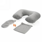 Zestaw akcesoriów podróżnych, miękkie zatyczki do uszu, maska na oczy, dmuchany zagłówek, posiada kieszeń na telefon lub słuchawki, pokrowiec ze ściągaczami w komplecie