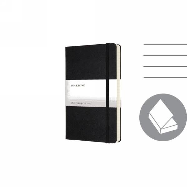 Duży zeszyt MOLESKINE Cahier Journal (ok. A5, large), 80 stron w linie, miękka okładka z widocznymi przeszyciami na grzbiecie, kieszeń wewnętrzna, 16 kartek z perforacją umożliwiającą wyrwanie na końcu